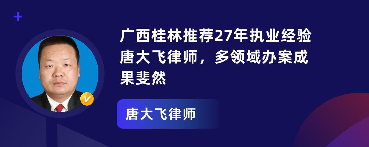 在广西桂林有这样一位经验丰富的律师——唐大飞,他拥有长达27年的执业年限,在法律领域深耕不辍,凭借专业的知识和丰富的经验,为众多当事人提供了优质,服务。