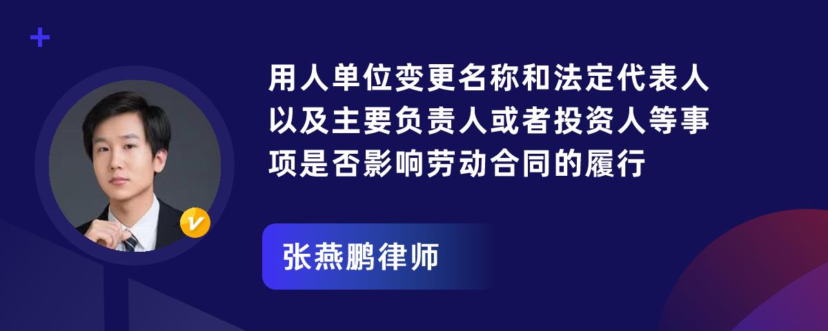您的位置:首页 > 精选解答 > 劳动纠纷 > 用人单位变更名称和法定代表人以及主要负责人或者投资人等事项是否影响劳动合同的履行